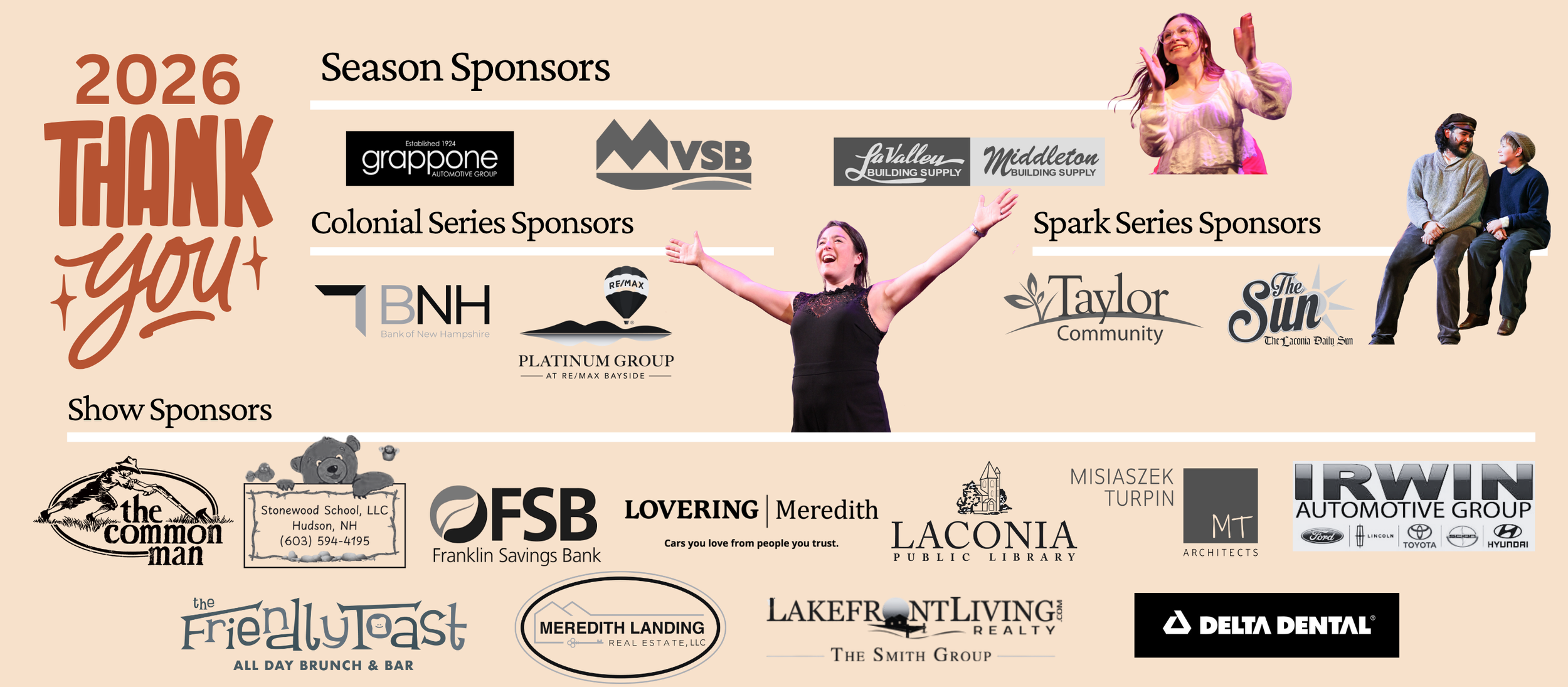 Our productions are at the Colonial Theatre and around the Lakes Region.